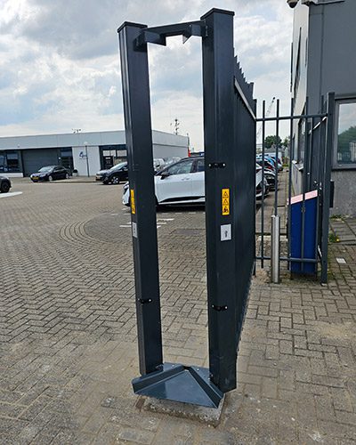 Voor DHG hebben we op hun locatie in Schiedam de bestaande 12 meter schuifpoort vervangen door een nieuwe van 10 meter. Dit was noodzakelijk omdat de poort tussen twee gebouwen staat en bij harde wind er een aanzienlijk tochtgat ontstaat waardoor de huidige poort op meerdere plekken is geknikt.