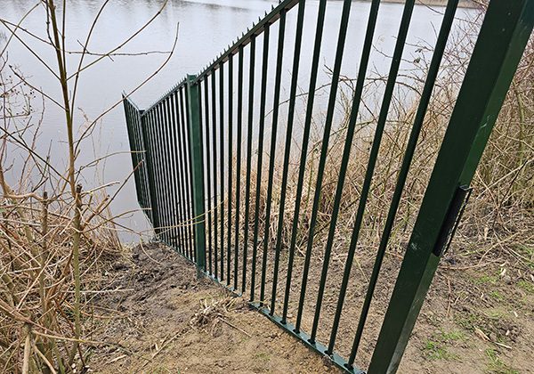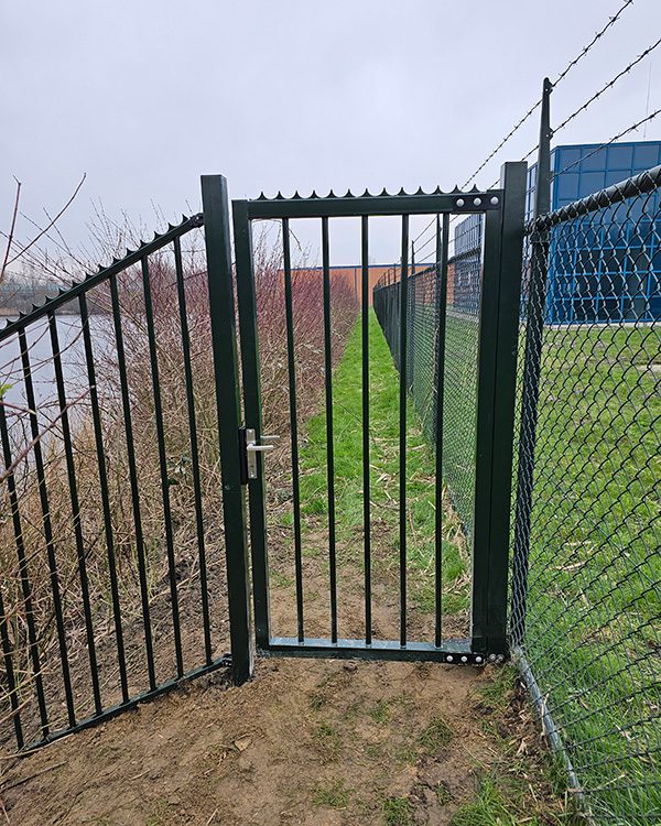 In Hoofddorp hebben wij een looppoort met aansluitend hekwerk geplaatst op een talud met een slootwaaier. Een slootwaaier is een waaiervormig hekwerk dat bij een sloot wordt geplaatst.